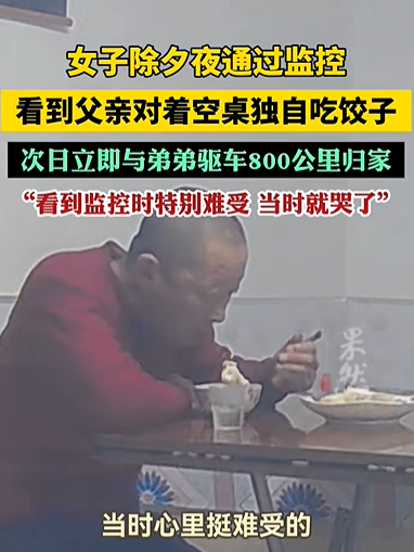 2月19日,据大众日报消息,女儿除夕夜在监控里看到爸爸一个人吃饺子,心里很难受,当天晚上就哭了,第二天就和弟弟从内蒙古驱车800多公里赶回黑龙江哈尔滨。